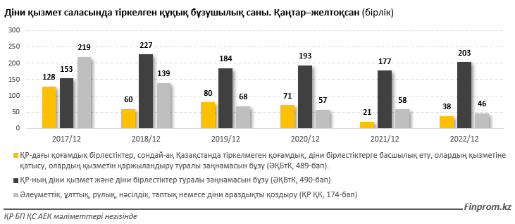 Қазақстандағы АҚШ елшілігінің өкілдері «ел үкіметін азаматтардың діни наным-сенімдерін бейбіт түрде білдіру және діни рәсімдерді еркін орындау құқығын құрметтеуге» шақырады. Бұл туралы халықаралық бақылаушылар ҚР-дағы 2022 жылға арналған діни сенім бостандығы туралы халықаралық баяндамасында жазды. Дәл осындай ұсыныстарды сарапшылар қазақстандық шенеуніктермен екіжақты кездесулер кезінде де айтты. Баяндамада авторлар ҚР-дағы діни бірлестіктерді рұқсат беру рәсімдеріндегі оң өзгерістерді де, сенім бостандығын шектейтін факторларды да атап өтті. Төменде осындай оқиғаларды ұсынамыз. Діни сенім бостандығына шектеулер туралы айтқанда, сарапшылар ғибадат ету орындарында ғана емес, рәсімдерді еркін өткізуге, мектепте діни атрибуттарды киюге (қыздардың орамал тағуы), тіркелмеген бірлестіктердің діни рәсімдерін орындауға және құдай туралы өз ойын ашық айтуға кедергілерді атады. Бақылаушылардың айтуынша, Қазақстандағы діни бірлестіктер бейресми түрде дәстүрлі және дәстүрлі емес болып екіге бөлінеді. Соңғыларына тыйым салынған, сондықтан олардың барлық әрекеттері, жиналыстары, сенімдерін насихаттауы шектеулі. Бірден ескерте кетейік: біз зорлық-зомбылық көрсетуге болады деп есептейтін радикалды діни ағымдар туралы емес, жиналып намаз оқығысы келетін, өздерінің мерекелері мен рәсімдерін өткізгісі келетін бейбіт діни топтар туралы айтып отырмыз. Тіркелу мен ешқандай шектеу көрмеуге болады ғой дегеніңізбен, халықаралық ҮЕҰ бағалауынша, мұның өзі әрдайым оңай емес. «Кейбір діни топтар өкілдерінің айтуынша, олар тіркелу әрекеттерінен бас тартты, өйткені оларға бұған дейін де бірнеше рет бас тартылған. Сондай-ақ, жергілікті діни бірлестікті тіркеу үшін талап етілетіндей, қауымдастық үнемі 50 адамды жинай бермейтін. Баптисттік шіркеулер кеңесі үкіметтен шеттету саясатын ұстана отырып, тіркеулуден әлі бас тартып отыр. Саентология шіркеуі былтыр діни бірлестік емес, қоғамдық ұйым ретінде жұмысын жалғастырды. Билік оларға ресурстық орталықтарды, кітапханаларды ұстауға рұқсат берді, бірақ діни қызметке тыйым салды», — делінген хабарламада. Кейбір қазақстандықтардың діни сенімінің құпиялылығын соңғы халық санағының нәтижелері бойынша ішінара бағалауға болады. ҚР СЖРА Ұлттық статистика бюросының мәліметінше, 2021 жылы халықтың 69,3%-ы исламды, 17,2%-ы христиандықты, 0,1%-ы басқа дін түрлерін ұстанады. Тағы 11% азамат түрлі себептермен сауалнамада өздерінің діни сенімі туралы мәліметтерді көрсетуден бас тартты. ҚР Ақпарат және қоғамдық даму министрлігі (АҚДМ) Дін істері комитетінің мәліметінше, биыл екінші тоқсанда Қазақстанда 3,9 мың діни бірлестік болған. Олардың 71%-ы өздерін ислам дінін ұстанатын түрлі топтар ретінде таныстырса, 29%-ы христиандар мен басқа діндердің өкілдеріміз деп таныстырған. Қазақстанда ресми тіркелген православ шіркеуі сияқты ірі ұйымдар ғана емес, сонымен қатар кришнаит, мормон, мунит, иудей, бахай және т. б. шағын бірлестіктері бар. Бақылаушылардың берген бағасына қарағанда, елдегі тіркелген діни азшылықтың өзі ара-тұра өздеріне қатысты төзбеушіліктің болатынын айтады. ҮЕҰ-ның айтуынша, «кейбір діни топтардың мүшелері, соның ішінде орамал таққан мұсылмандар, евангелия протестанттары, баптистер мен Иегова Куәгерлері бұрынғысынша күшейтілген әлеуметтік бақылау мен кемсітушілікке тап болуда». Дін