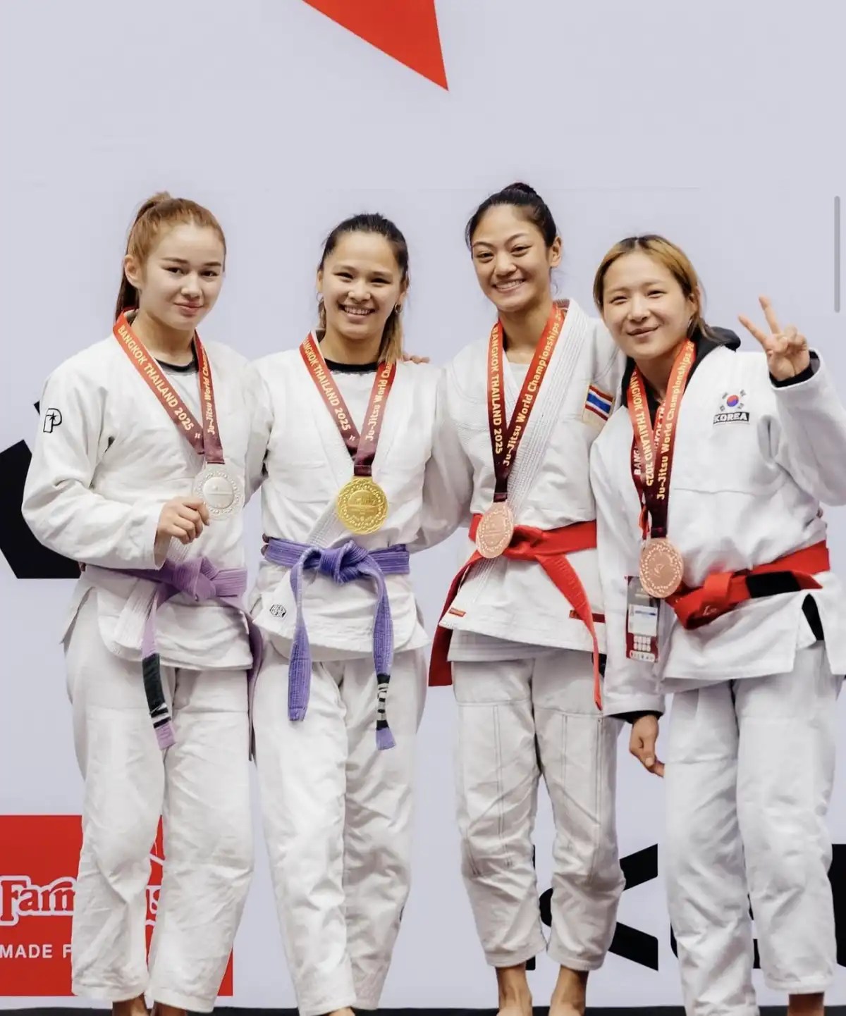 Жібек Құлымбетова Самат Рамазанов атындағы джиу-джитсу және грэпплинг академиясының спортшысы, қазіргі таңда күлгін белбеу иегері.