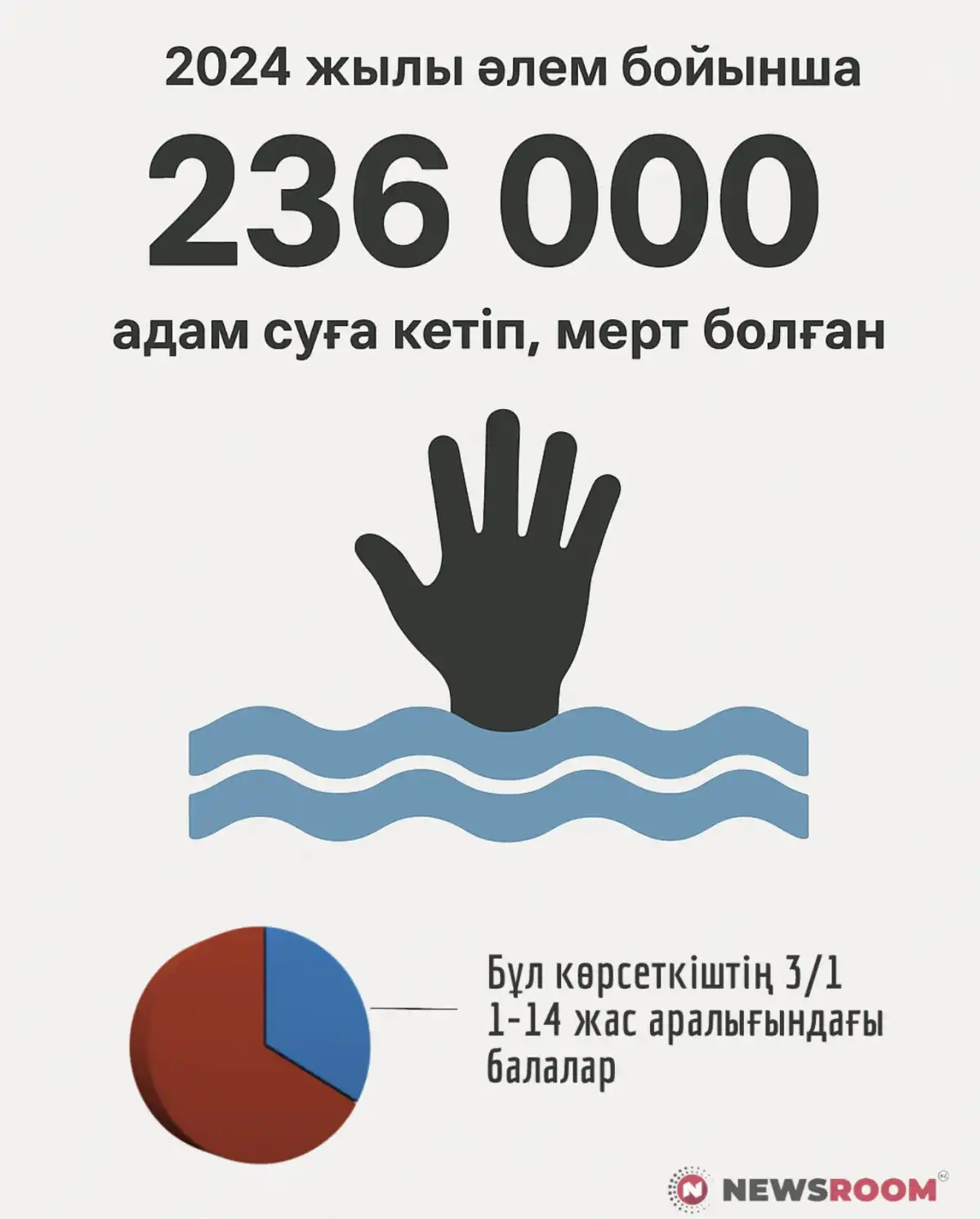 Дүниежүзілік денсаулық сақтау ұйымының дерегінше, 2024 жылы әлем бойынша 236 мыңнан астам адам суға кетіп, мерт болған. Бұл көрсеткіштің шамамен үштен бірі — 1 жастан 14 жасқа дейінгі балалар. Сарапшылардың айтуынша, балалардың басым бөлігі жүзу білмегендіктен және қауіпсіздік ережелерін сақтамағандықтан қаза табады.
