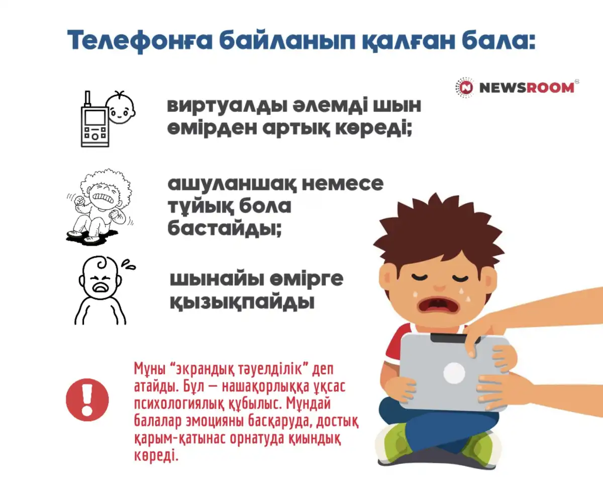 Психологтар мұны “экрандық тәуелділік” деп атайды. Бұл — нашақорлыққа ұқсас психологиялық құбылыс. Мұндай балалар эмоцияны басқаруда, достық қарым-қатынас орнатуда қиындық көреді.