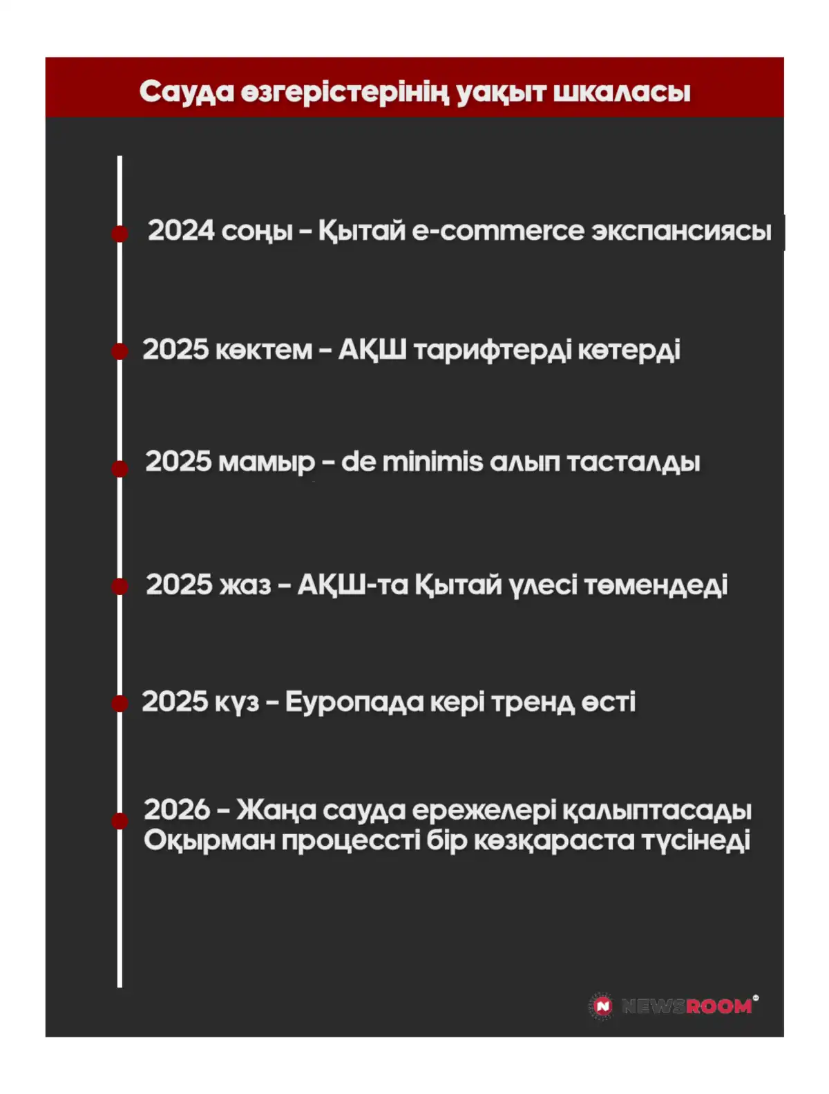 АҚШ пен Қытай арасындағы тарифтер, Еуропаның импортты қайта бағдарлауы, Азиядағы электрондық коммерцияның күшеюі – мұның бәрі Қазақстанның сауда, валюта және инфляциялық саясатына тікелей әсер ететін факторлар.