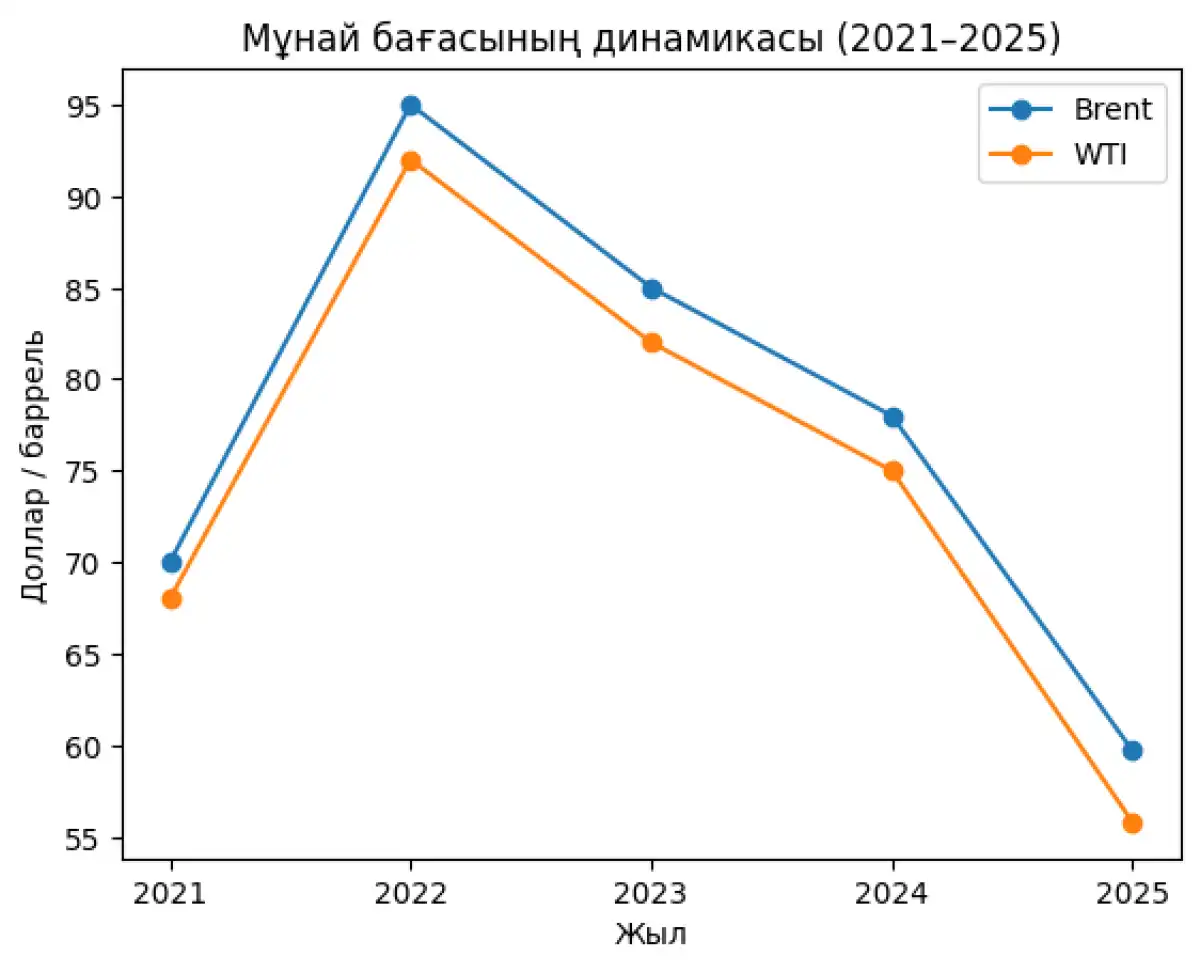 Сейсенбі күні Brent мұнайы барреліне 59,7 доллар деңгейінде саудаланды. Бұл – соңғы төрт жылдағы ең төмен көрсеткіштердің бірі. Ал америкалық WTI маркалы мұнай бағасы 55,8 доллар шамасында қалыптасты, бұл да 2021 жылдан бергі минимумға жақын.